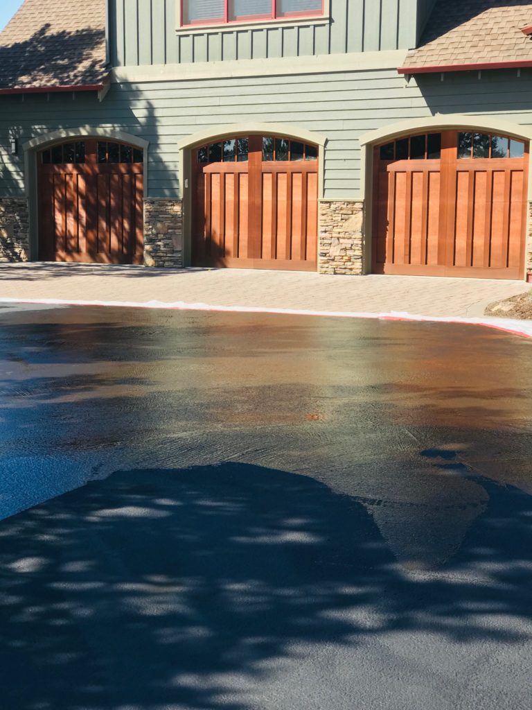 - Then apply a single or double coat of a high-quality, proven seal, made right here in Oregon. I mask all concrete and siding so there is seal coat only where it needs to be.